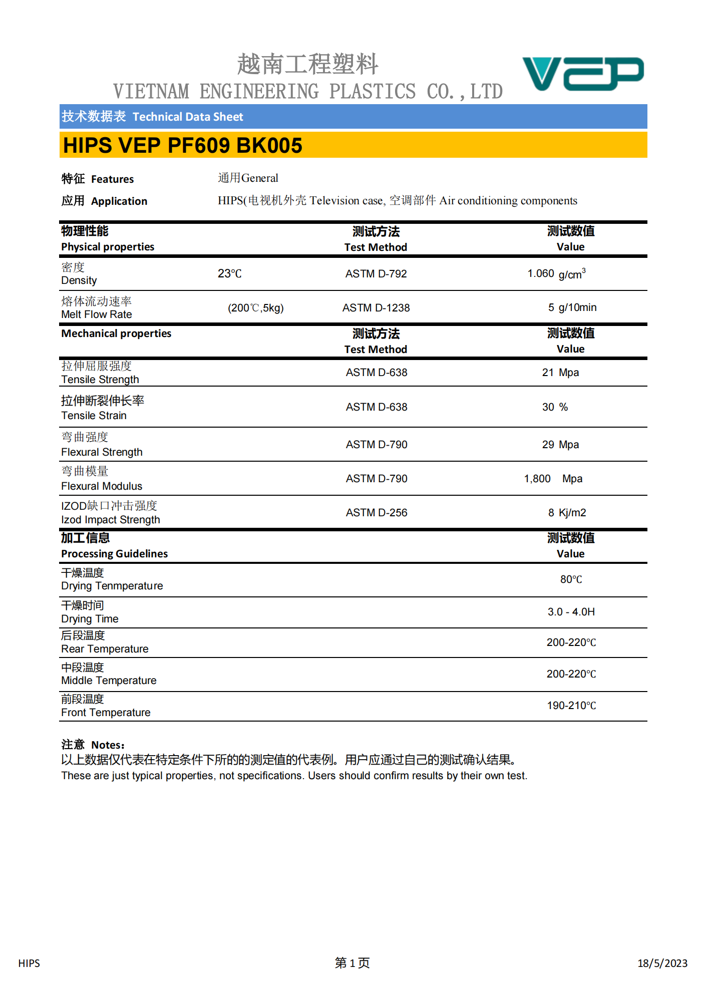 HIPS VEP PF609R BK005